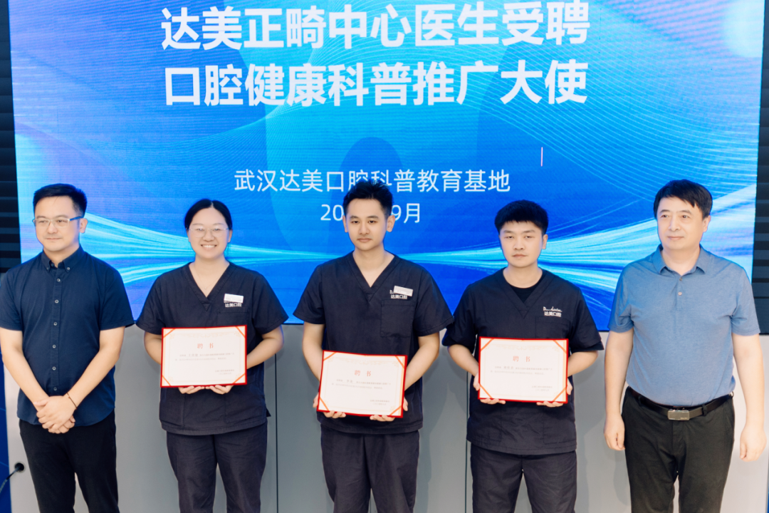 活动现场举行了达美口腔科普基地的授牌仪式,武汉市科协科创服务中心及万松街道向达美口腔正畸中心医生颁发了“科普推广大使”聘书。