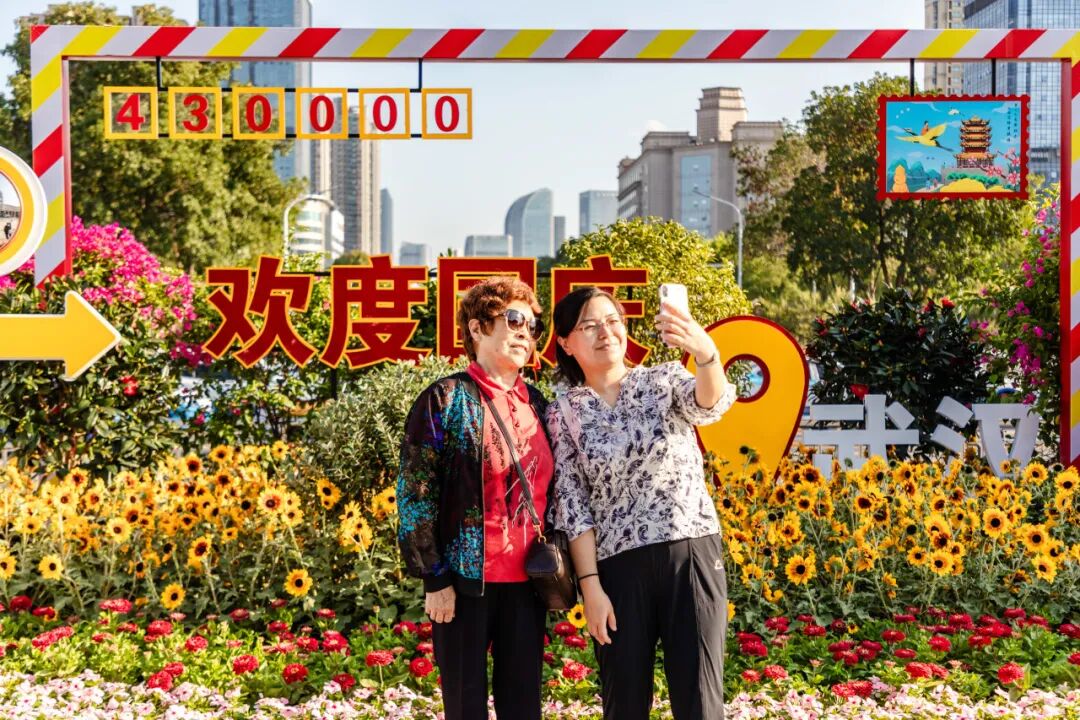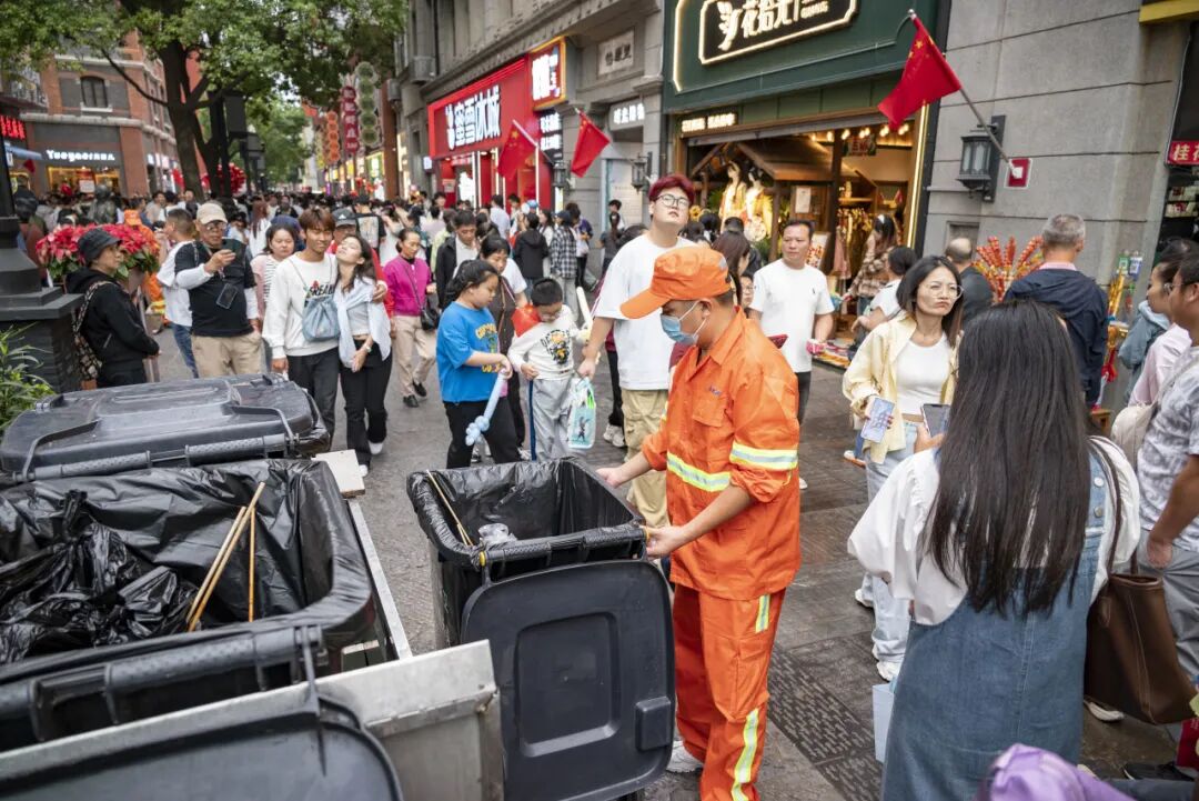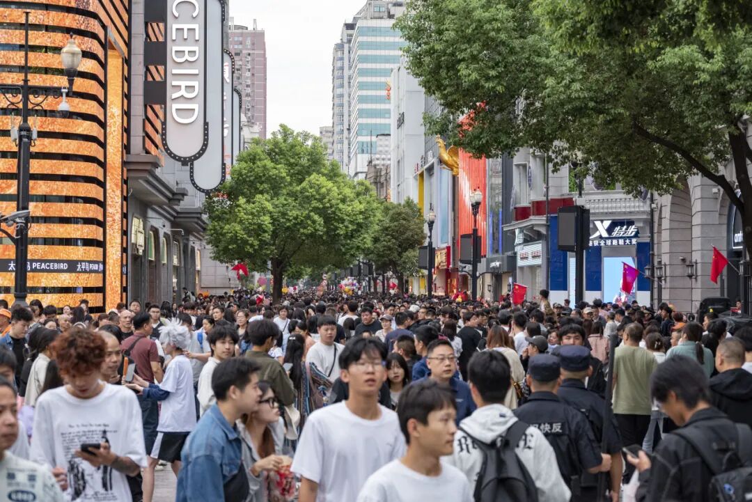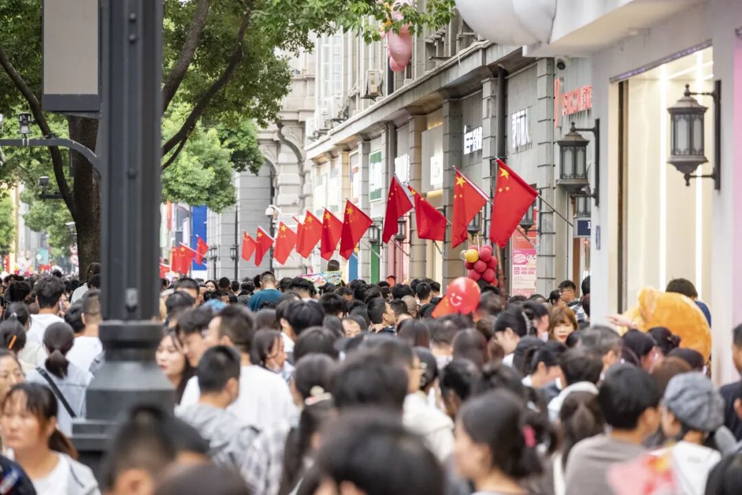 国庆假期,江汉路步行街成为游客的热门打卡地,日均人流量超40万人次。