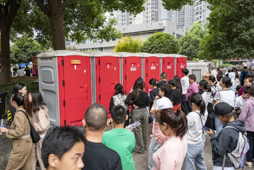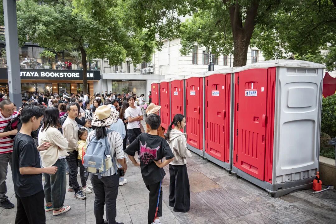 同时,为了保障市民和游客良好的如厕体验,国庆期间,江汉城管公厕管理部门在辖区商圈设立移动公厕,并张贴公厕指引标识,方便游客顺利如厕。