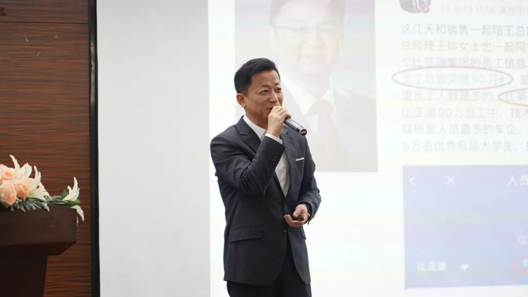 区政协委员、武汉比亚迪全品牌汽车销售有限公司总经理曹绍勇围绕“科技·绿色·明天”进行讲演,推介了比亚迪四大产业和比亚迪武汉全品牌营销中心。
