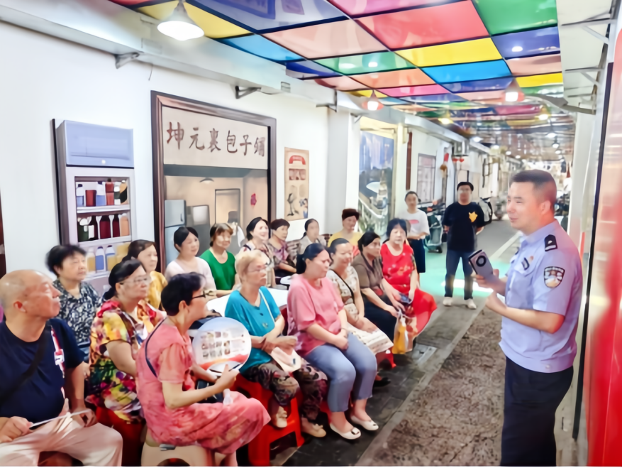 “将军!哎,老张,这步棋就像防诈骗,关键时刻不能贪‘小便宜’,得守牢自己的‘钱袋子’!”在民权街打铜社区的坤元里纳凉点,社区工作人员和志愿者巧妙地借对弈、拉家常的间隙,将防范养老诈骗、电信诈骗的要点,用居民听得懂的方言土语、结合生活实例娓娓道来。