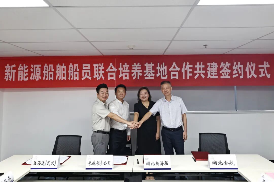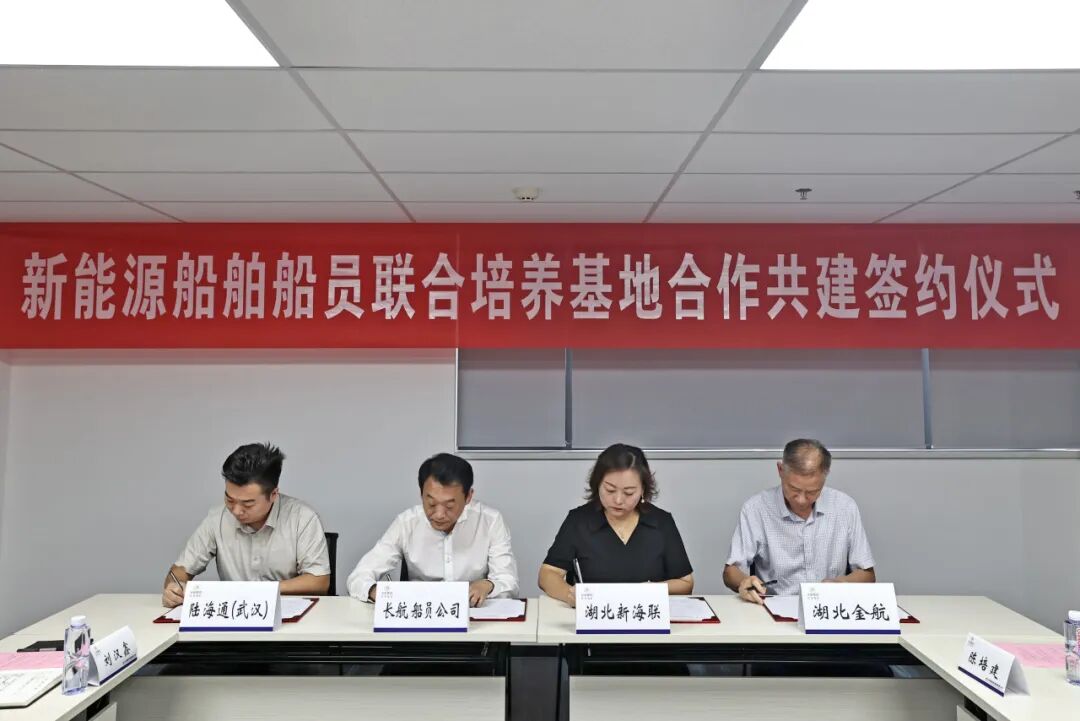 在合作共建交流环节,各方公司代表就基地管理与运作、共建方向与目标、建设内容与规划等内容进行热烈讨论。随后,在与会嘉宾的共同见证下,武汉长航船员管理有限公司、湖北新海联船员培训有限公司、陆海通(武汉)海洋科技有限公司、湖北金航国际船舶管理有限公司代表签署了合作共建意向书,标志着新能源船舶船员联合培养基地正式进入实施阶段。