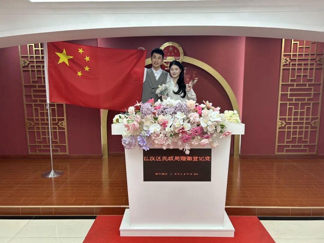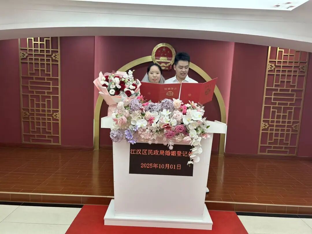 “国庆领证本就意义非凡,能让小家幸福与祖国大庆同框太开心了!工作人员的耐心服务和惊喜活动,让我们的幸福感加倍!”新人张先生的感慨,道出了所有领证新人的心声。此次国庆婚姻登记服务,是江汉区民政局践行“为民服务”宗旨的生动实践。未来,该处将持续聚焦群众需求,在重要节点推出更多便民举措,让婚姻登记窗口成为传递幸福的“暖心驿站”。