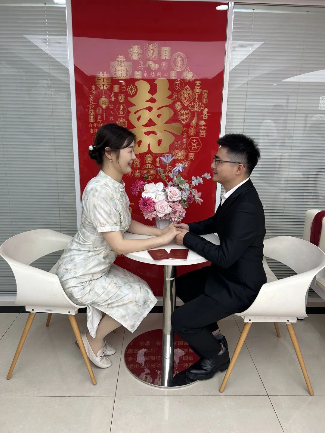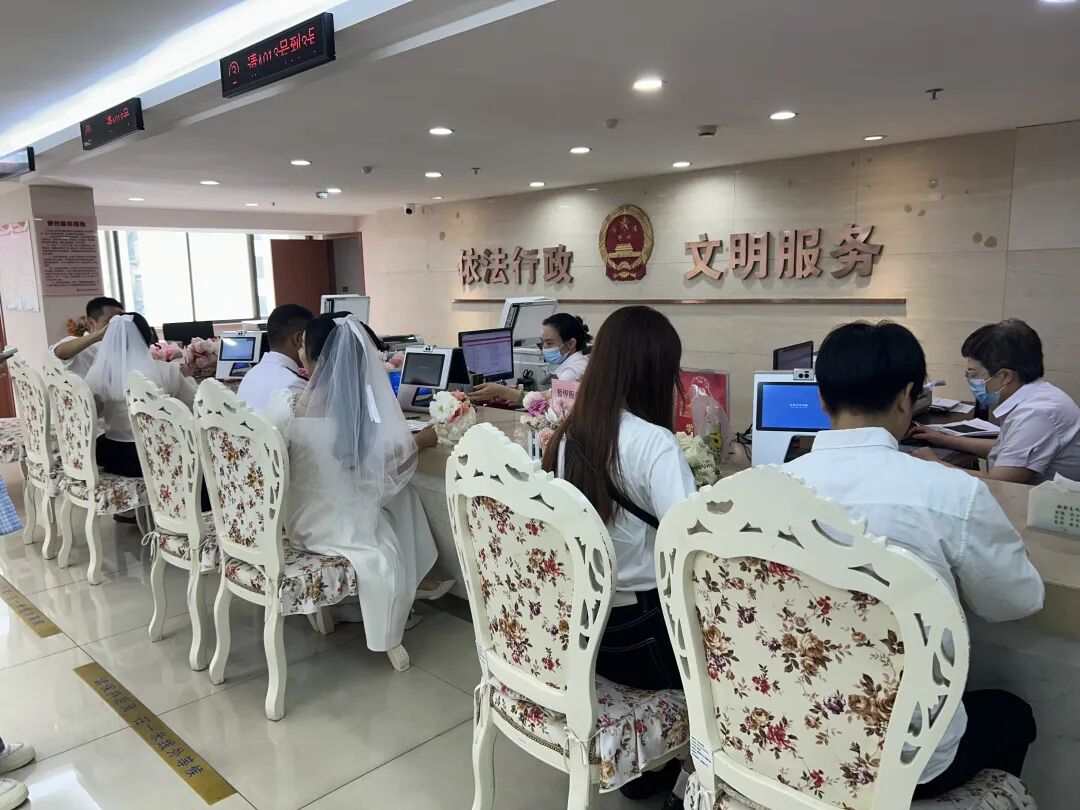 特色赋能,升级仪式感幸福体验。登记当天,多样化特色活动让领证更具纪念意义。新人可与国旗同框留影,在国徽下庄严宣誓,深刻感悟婚姻中的责任与担当;工作人员还通过特色颁证、婚俗宣传等环节,将弘扬社会主义核心价值观、传承中华优秀婚姻家庭文化融入登记全流程,引导新人树立正确婚恋观,助力培树崇德向善的家庭新风尚。