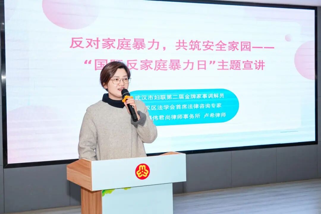 在“莲姐”普法宣讲环节,武汉金牌调解员、江汉区法学会首席法律咨询专家卢希律师聚焦《中华人民共和国民法典》婚姻家庭编、《中华人民共和国反家庭暴力法》等核心法律法规,结合真实案例深入解读反家暴维权要点、证据留存、求助渠道等关键内容,同时现场回应居民提出的婚姻家庭纠纷、权益保护等疑问,用通俗易懂的语言打通普法“最后一公里”。