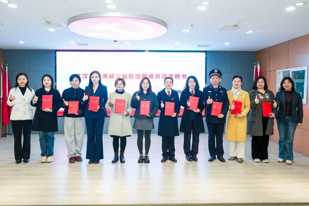 随后,现场为江汉家事调解公益联盟圈成员颁发聘书,受聘人员涵盖街道、社区妇联干部、公安干警、检察官、法官、司法行政工作者、武汉市金牌调解员、律师、心理辅导师、巾帼志愿者代表等,进一步充实了反家暴调解工作力量,搭建起多元联动的维权服务体系。
