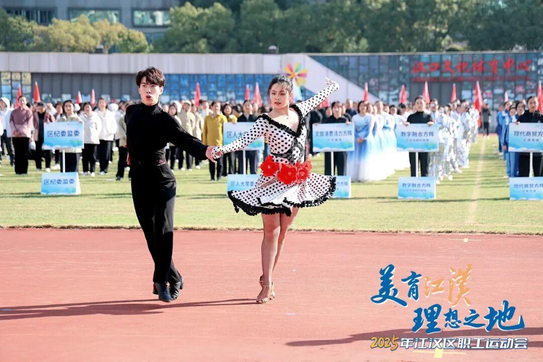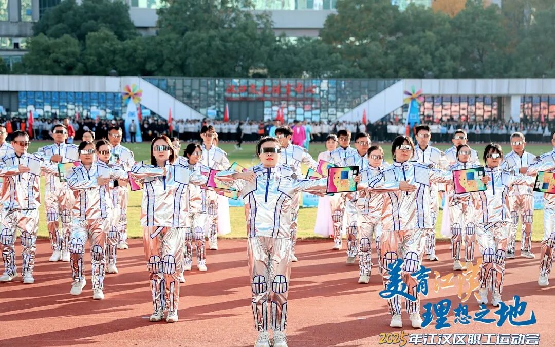 本届江汉区职工运动会,73家单位组成59支队伍,伴随着激昂的运动员进行曲,五大特色方阵率先登场。红色领航方阵高举信仰之旗,彰显江汉干部职工在党的引领下凝心聚力、共谋发展;金融强区方阵踏出资本市场的节奏与力量,谱写“千亿基金,助力江汉”的现实图景;数字融合方阵身着银色未来装,手持平板佩戴AR眼镜,演绎“智转数改”的科技动能;文旅消费活力方阵舞出都市商圈的热闹繁华、文旅街区的独特韵味与街头巷尾的袅袅烟火;现代商贸方阵全员蓝色工装,通过舞剧展现拼搏实干的江汉物流人建设商贸物流核心区的决心与奋斗力量!其余各代表队也迈着矫健步伐整齐入场,或用精编节目博得喝彩,或以嘹亮口号响彻会场。