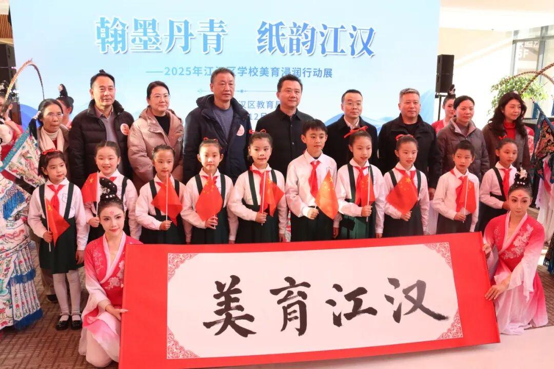 活动启动环节更是别具匠心,伴随着“翰墨丹青 纸韵江汉”主题卷轴徐徐展开,武汉市教科院体卫艺教研室主任郑卫国上前完成“笔墨点睛”,展览正式启幕。