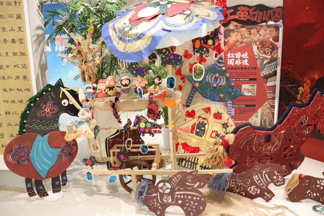 在“非遗剪纸区”,巨幅剪纸作品引人驻足。孩子们用一把剪刀、一张红纸,将江汉元素融入传统剪纸语言中,既传承非遗技艺,又赋予地域文化新的童趣表达。