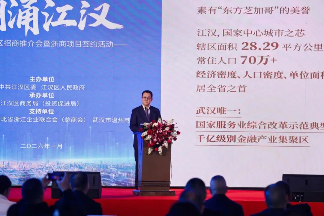 江汉区委副书记、区长郭小平表示,江汉早在明清时期,就有“楚中第一繁盛处”的美誉,与浙商渊源深厚。当前,江汉正构建以“245”现代化产业体系为核心的现代化经济格局,全力打造“三个示范区”,持续深化“宜商江汉”服务品牌,期待更多浙商走进江汉、布局江汉、创业江汉。