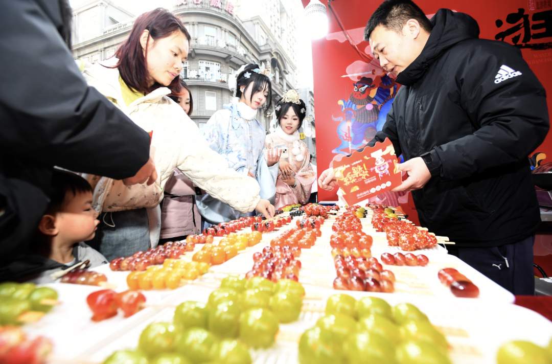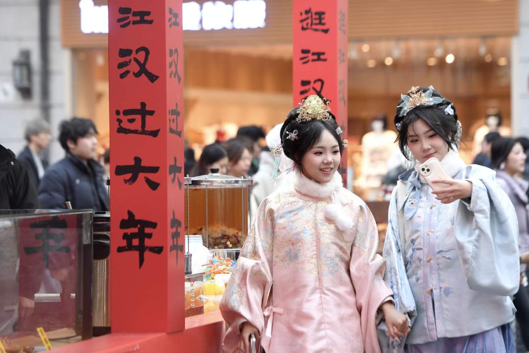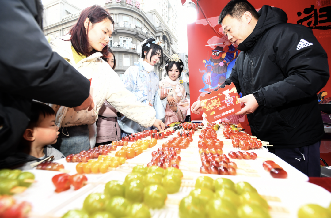 江汉路步行街新春庙会上,新潮与民俗元素交织