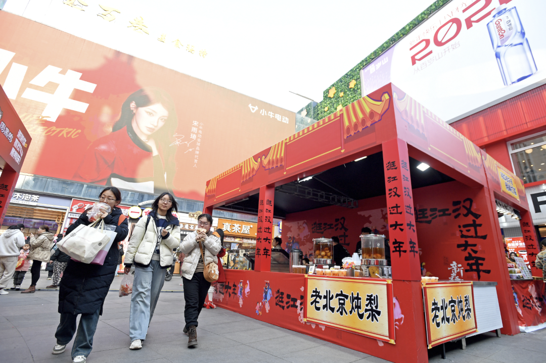 “江汉路步行街新春庙会将持续到3月中旬。春节期间每天都有活动,如‘一日店长’、初一舞狮、初五财神巡游、初八‘开门红’舞龙等。”闵斌介绍,“这是江汉路步行街首次举办由商会自发牵头组织的新春庙会,规模大、参与商户多。以新春庙会为载体,庙会深度挖掘本土民俗资源与江汉路商业特色,全年龄段可参与,满足市民新春娱乐、消费、文化多重需求,带动商户客流与营收增长,深化文商旅融合发展。”
