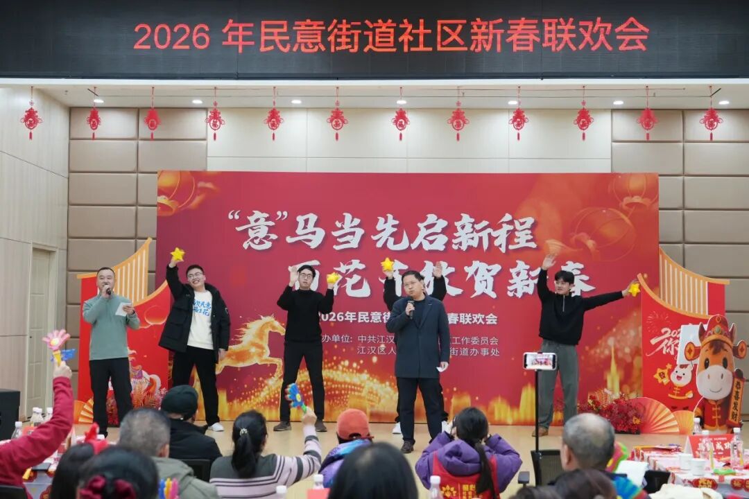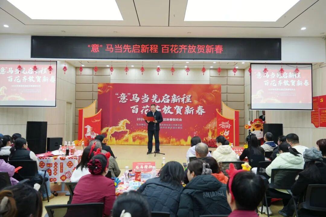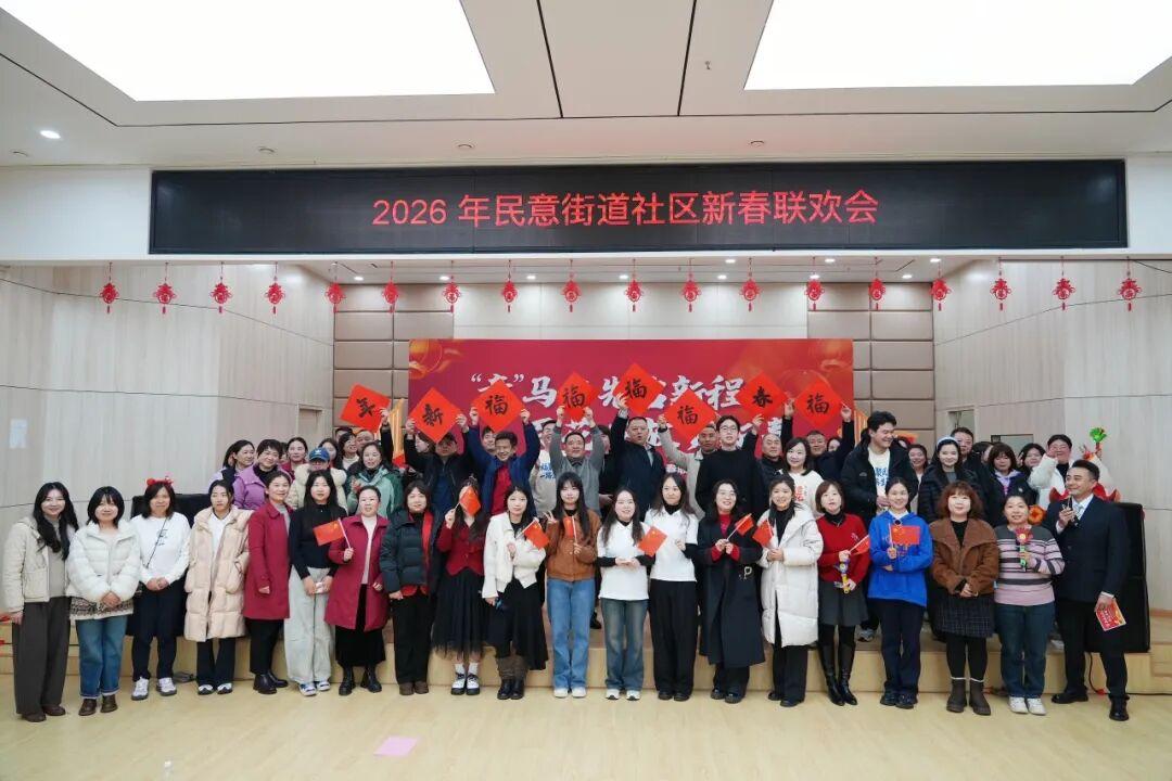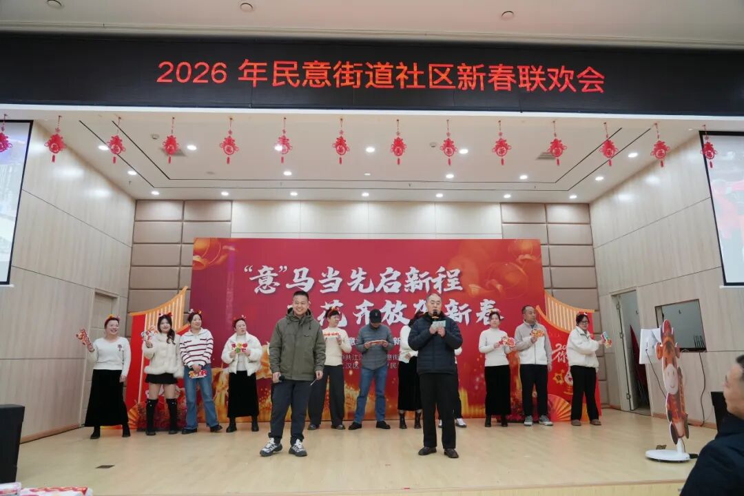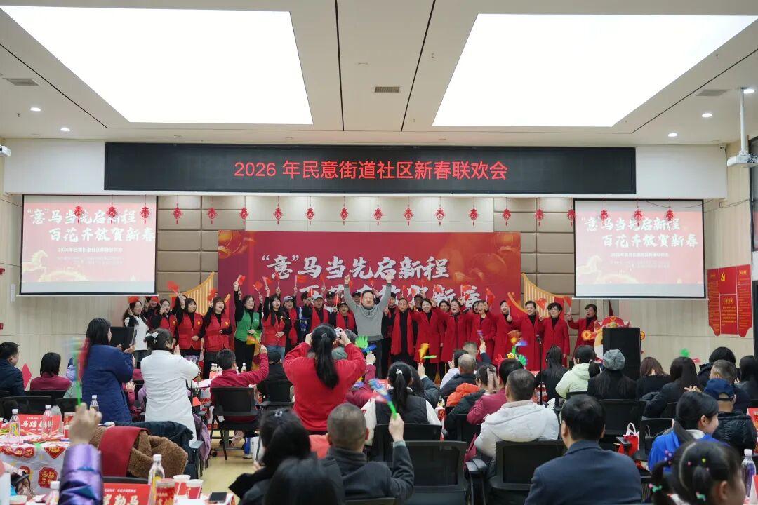 由民意街道党工委、办事处主办的“‘意’马当先启新程 百花齐放贺新春”——2026年民意街道社区新春联欢会在此隆重举行。街道干部、社区工作者欢聚一堂,卸下一年的繁忙与疲惫,在歌声与掌声中,共同奏响了一曲温情与奋进交织的新春乐章。