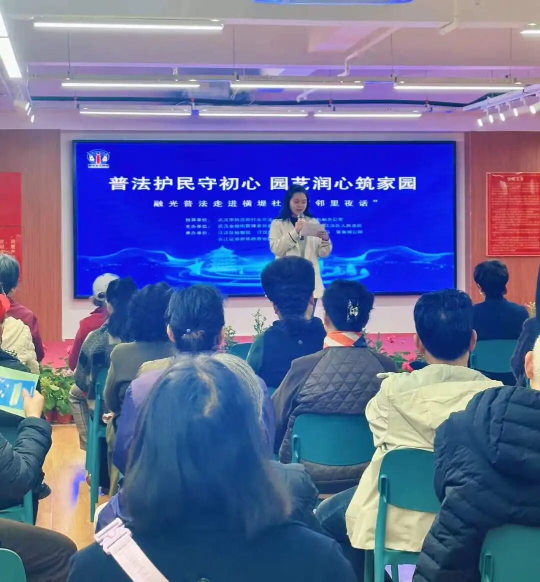 3月26日晚,各参与单位党员干部和居民们一起在横堤社区“邻里夜话”共同交流防非小知识。大屏幕循环播放防非宣传短片,长江证券的专业讲师揭露非法集资等风险;互动抢答环节将专业知识趣味化,让居民在参与中掌握识别技巧,筑牢社区金融安全防线。活动现场暖意融融,融光普法驿站”搭建起法治沟通桥梁。