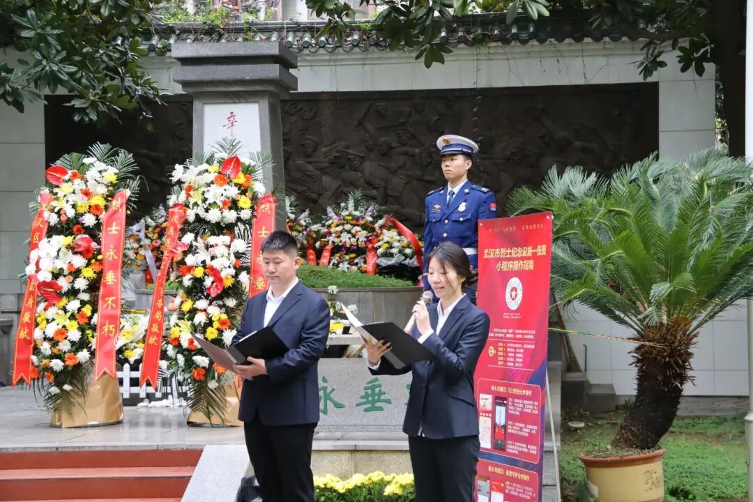 “我们将传承你们的精神,在平凡岗位上,坚守担当;我们将高举你们的旗帜,在复兴道路上,勇毅前行。”区退役军人事务局青年党员代表献上深情诗朗诵,声音铿锵有力,这是对英烈不朽功勋的赞颂,也是新时代党员赓续红色血脉、勇担时代使命的坚定决心。“我们将以革命先烈为镜,把缅怀之情转化为干事创业的澎湃动力。我们将永葆军人本色,在服务社会、造福人民中主动作为、贡献力量,让红色精神在我们这里代代相传!”来自军创企业湖北中昱晟威保安服务有限公司的退役军人代表说。
