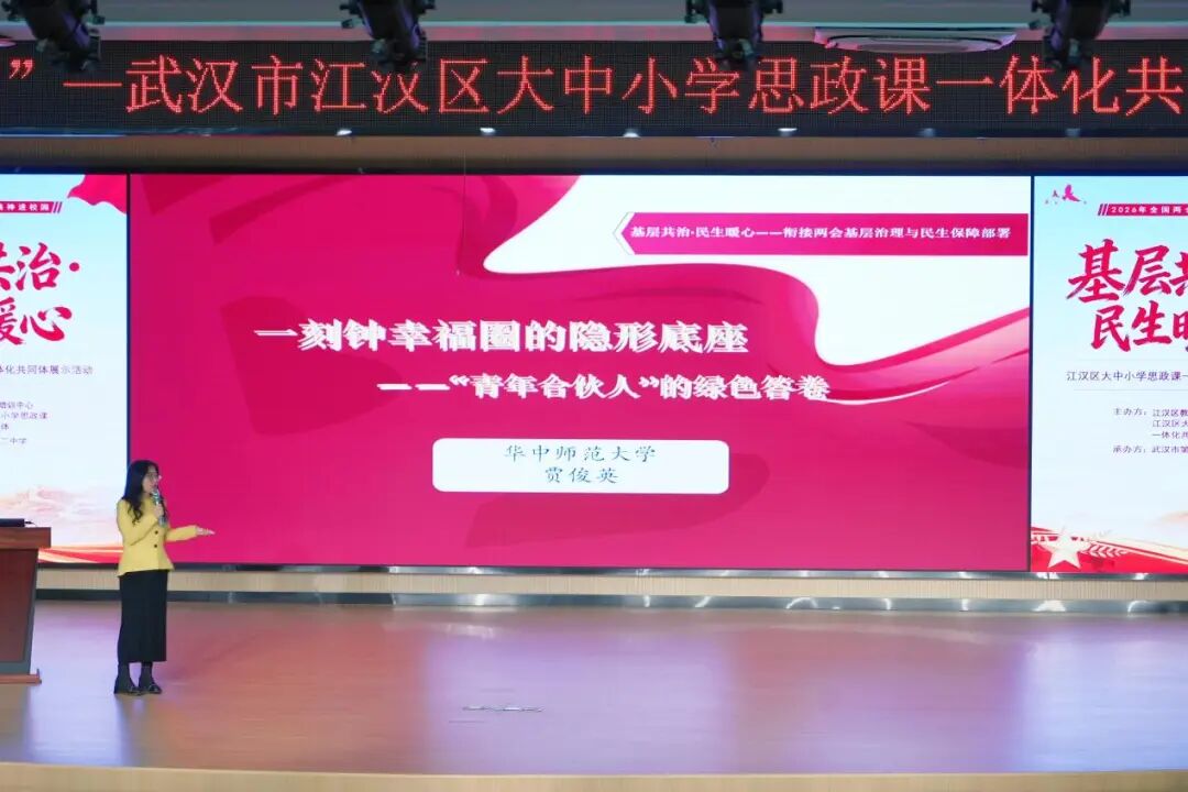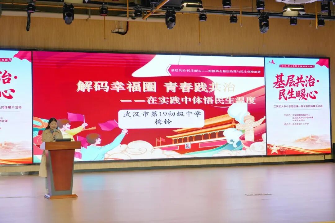 思政小课堂连接社会大课堂,民生身边事滋养少年心。4月9日,江汉区大中小学思政课一体化教研活动在武汉市第十二中学举办。全区中小学思政教师齐聚一堂,聚焦“一刻钟幸福圈”核心主题,共上一堂兼具学段特色与育人深度的一体化思政课,推动两会精神走进校园、走进课堂、走进学生心中。