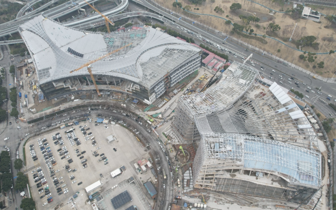 武汉图书馆新馆位于江汉区王家墩中央商务区东北角,建筑外形已显现,其标志性的波浪形屋顶自西南向东侧优雅跌落,从空中俯瞰,犹如一座未来感十足的“会呼吸的知识峡谷”。