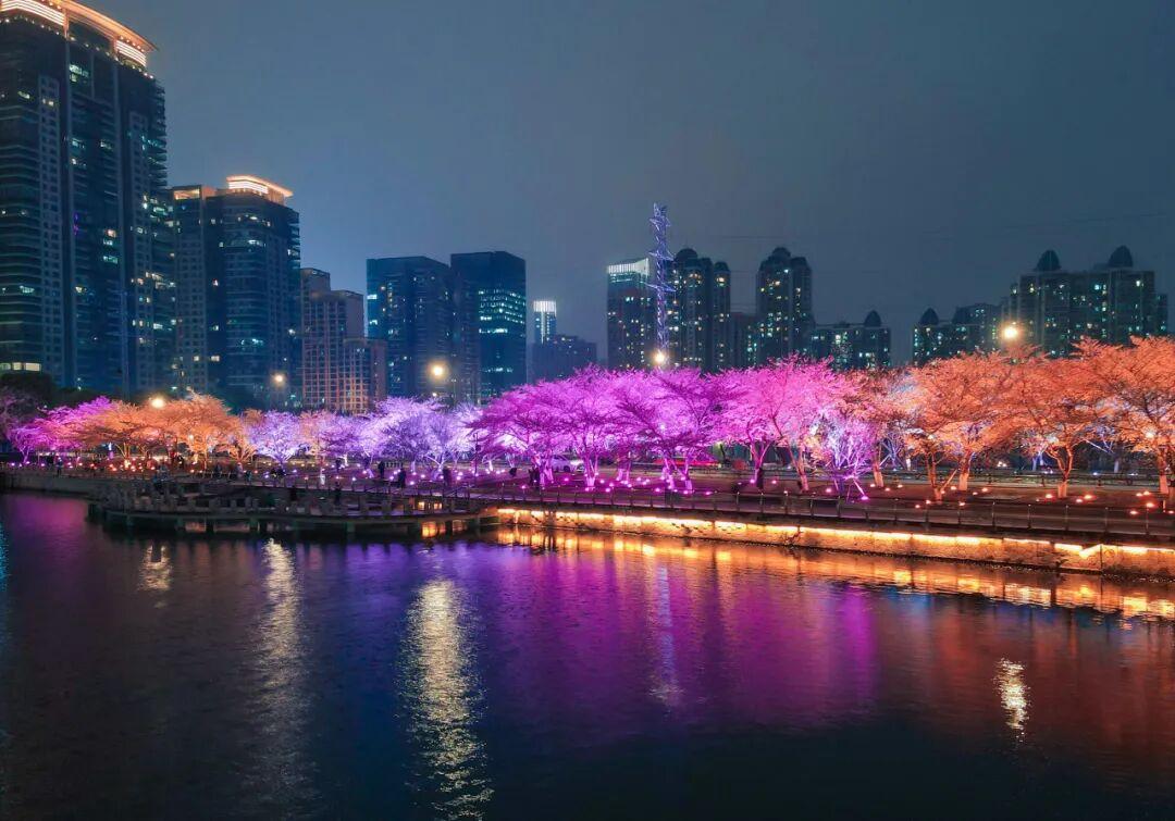 西北湖的夜樱,也是一大看点。夜幕降临,华灯初上,灯光似繁星倾洒,为樱花镀上一层璀璨光晕,犹如繁星点点,在夜色中翩翩起舞,让人流连忘返,沉醉在这独属于西北湖樱花的美妙夜色里。