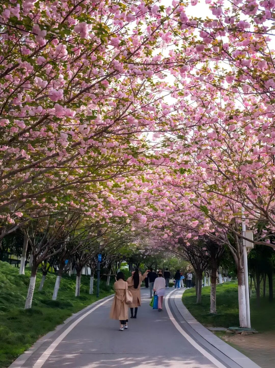 公园内有一条种植着晚樱品种的樱花大道,待到春意正盛时,樱花层层叠叠,灿若云霞。