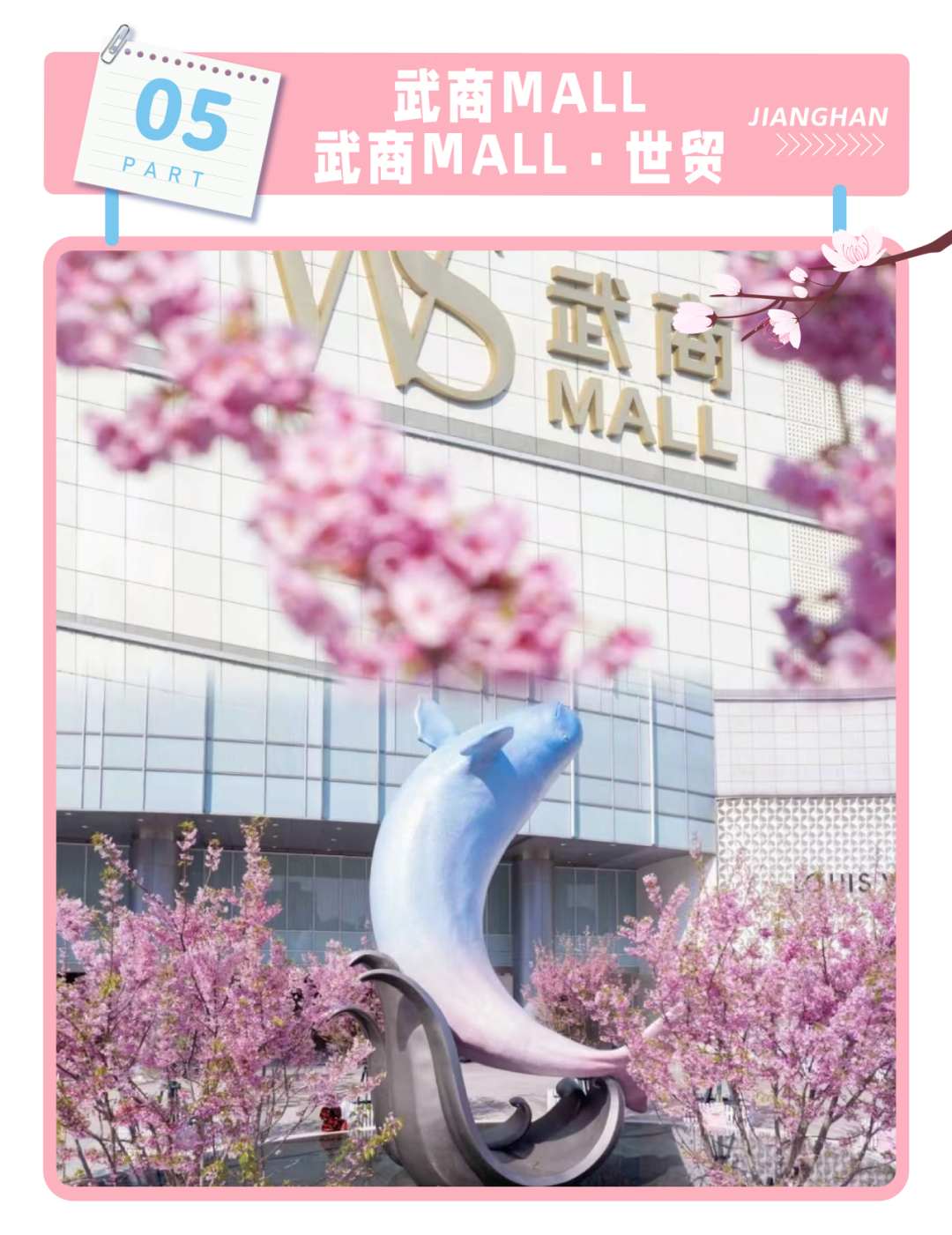 在商场门口,同样也有着梦幻赏樱地。今年,武商MALL推出“快闪樱花”,百余株樱花将沿商圈铺展,烂漫樱花融入商业空间,匠心营造沉浸式花卉新场景,为市民游客带来移步换景的赏樱新体验。