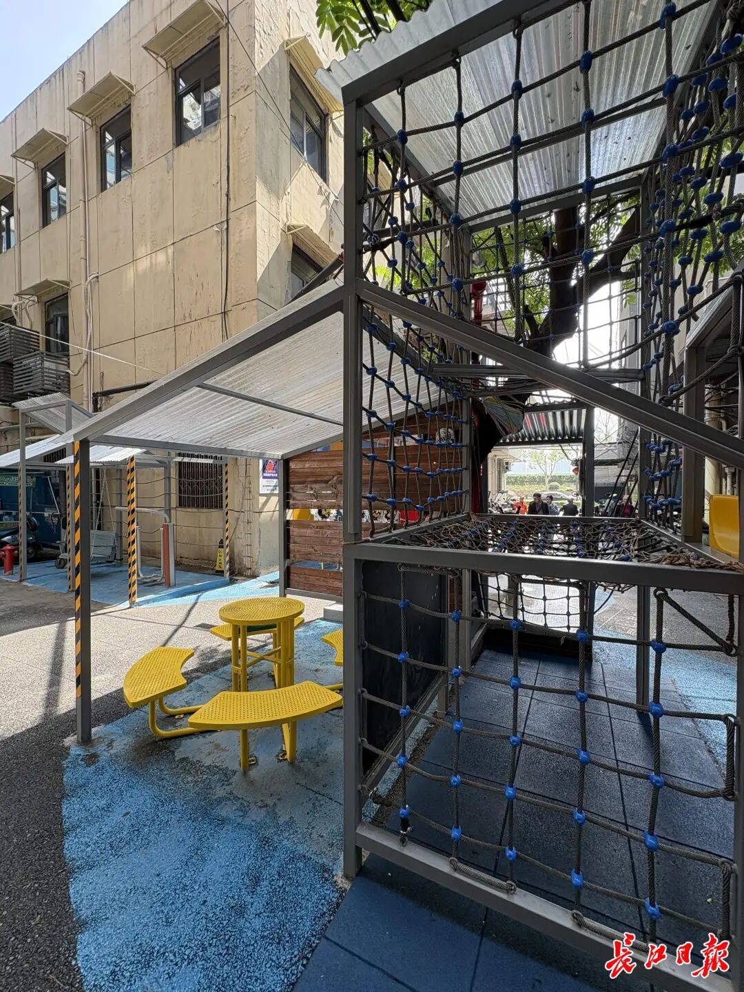 游乐设施的另一边放置着桌椅,供居民歇脚