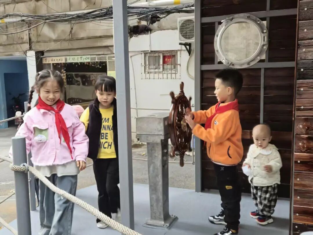 最经济的办法,是把树移走,腾出整齐的地方放标准化设施,但郭大齐没让挖机进场。“改造更新不是做简单的加减法,而是要为居民留住建筑原本的记忆。”他带着团队绕着老树,花费近半年时间,硬是“手搓”出一艘轮船。人工成本加上材料费用,花了近5万元。